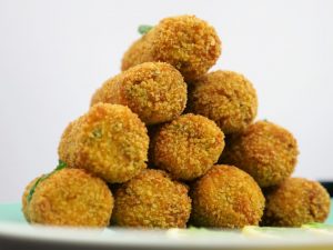 Now dip cones into beaten eggs and coat in breadcrumbs (makes 14-15).