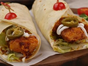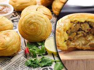 Brush flour slurry on one side of bread and fold bread slice to make a cone,add chicken filling (1 & ½ tbs),mozzarella cheese (1tbs),apply flour slurry on the edges and bring the edges together and seal the edges properly.