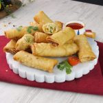 -Take a roll sheet (8x8 inch),add prepared filling in the center,fold both sides,apply flour slurry & roll up (makes 21).