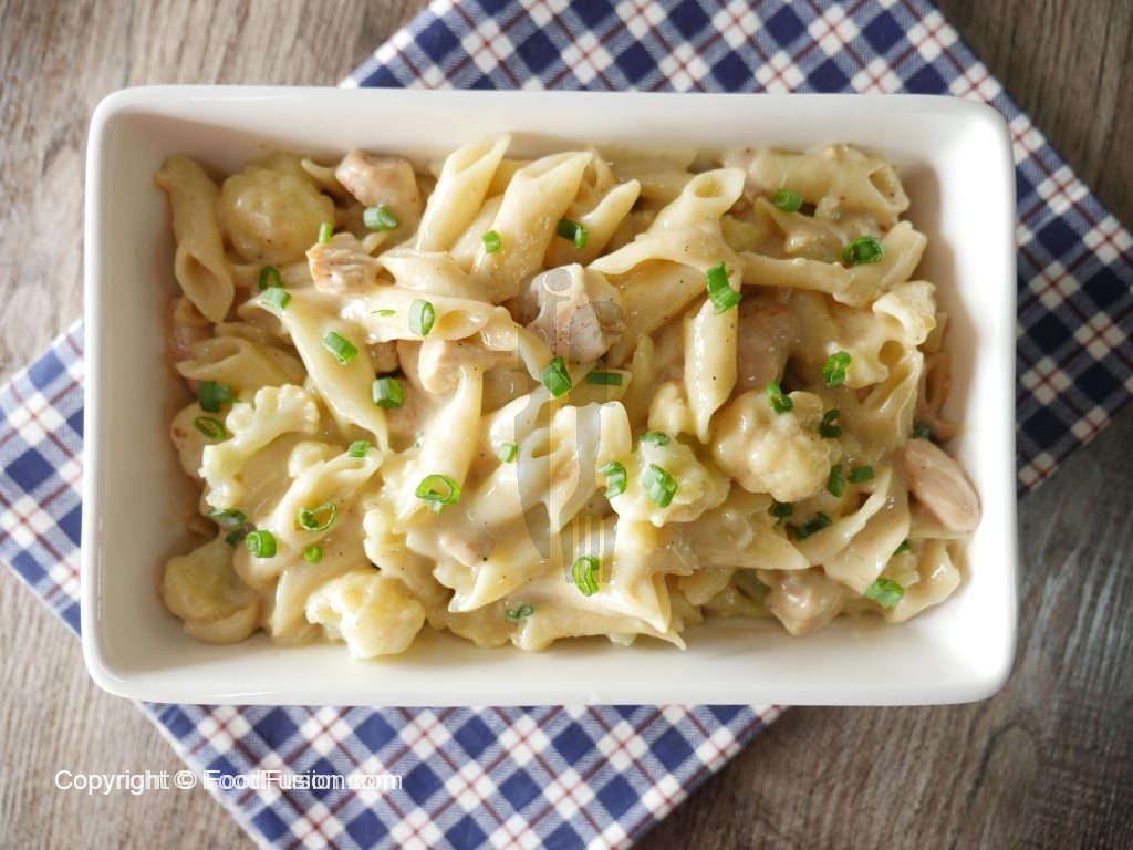 Chicken Cheesy Pasta with Cauliflower a fantastic recipe for a quick and tasteful meal. #HappyCookingToYou