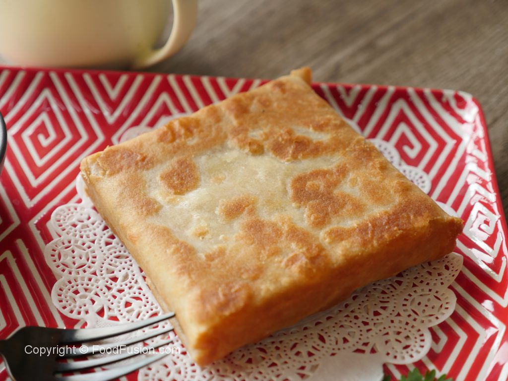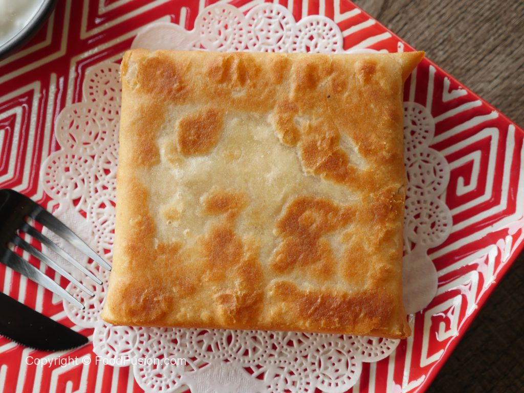 On half cooked flat bread (roti),place chicken patty,cheese slice and fold all edges of flat bread (roti) and apply all-purpose flour paste to seal the edges.