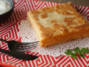 Working surface ko oil sa grease karein aur marinated qeema ka mixture ko rakh ker evenly pheela lein aur cutter ki madad sa square shape mein cut ker lein.