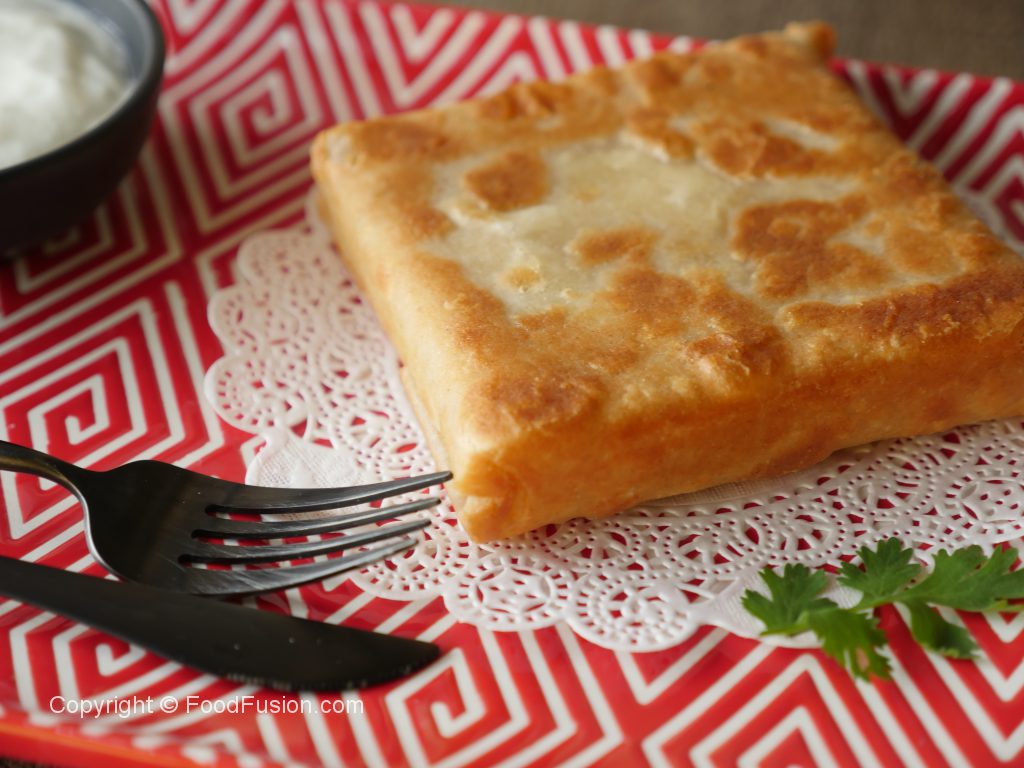 Half cooked flat bread (roti) per chicken patty aur cheese slice rakh dein aur flat bread (roti) ka tamam edges ko fold ker lein aur maida ka paste laga ker seal ker lein.