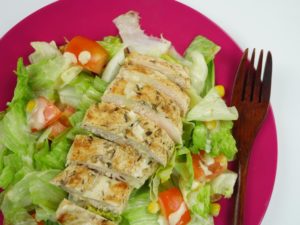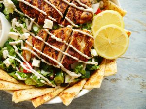 -Bowl mein iceberg lettuce,tayyarnmini chicken kafta (approx. 30),black olives,green olives, kheera,mooli,pyaz,yellow cherry tomatoes,red cherry tomatoes,hara dhania aur 2-3 tbs tayyar gm salad dressing dal ker ache tarhan mix ker lein.