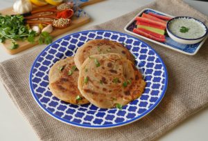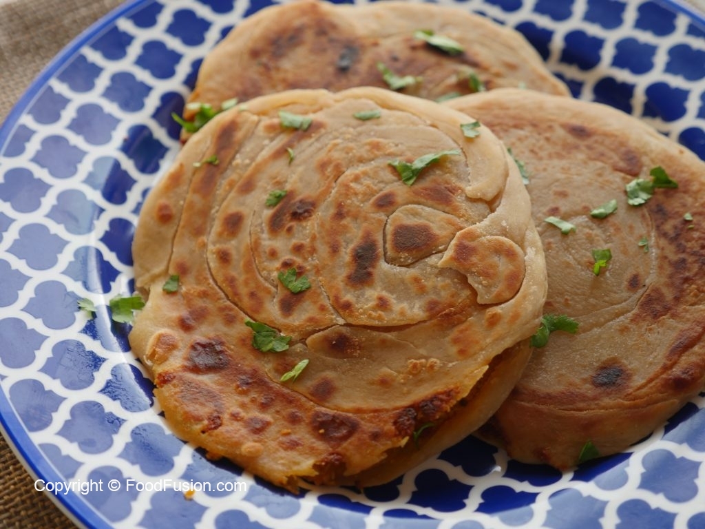 Heat griddle,place rolled dough,apply melted ghee & fry on medium flame from both sides until golden brown.