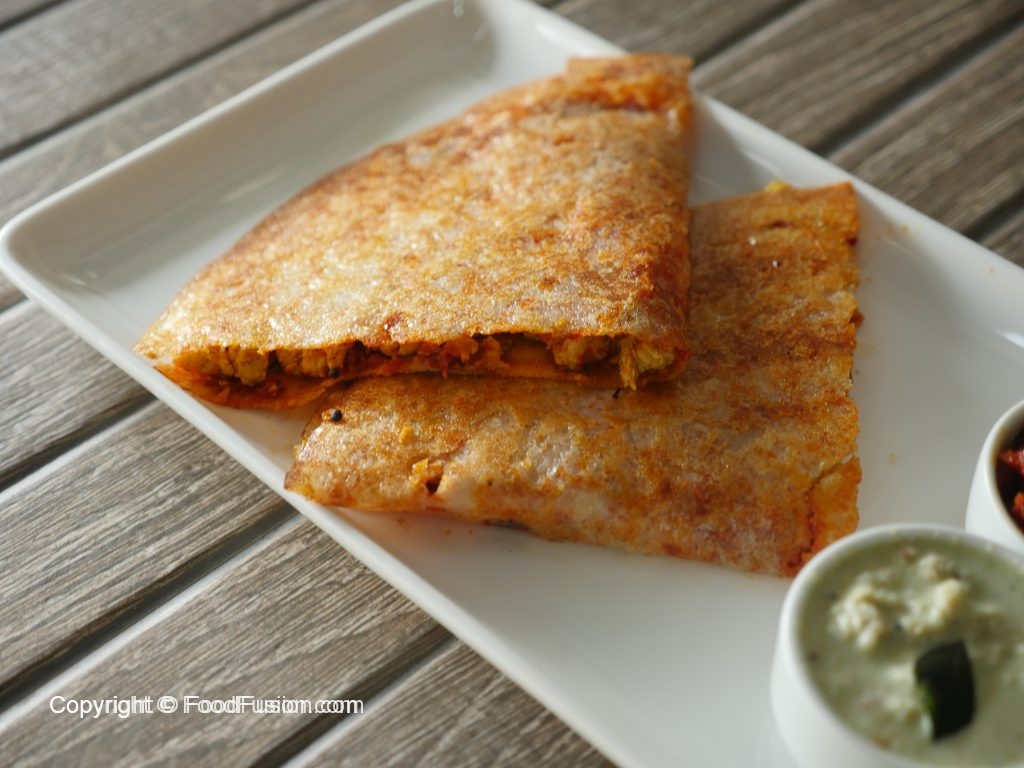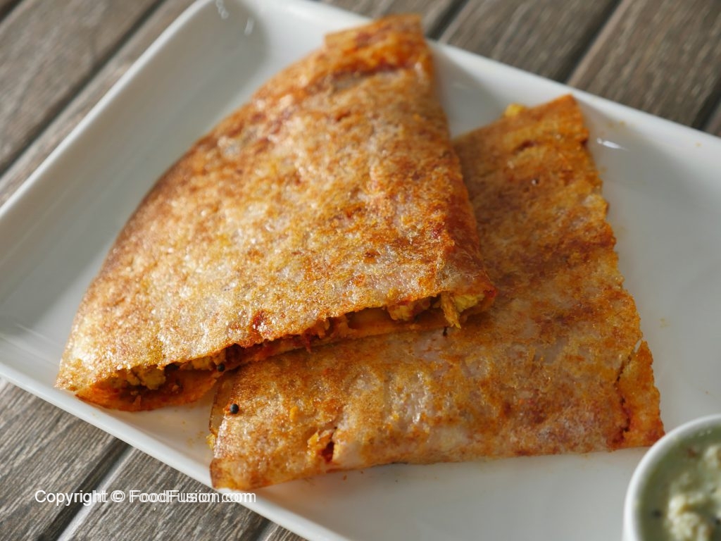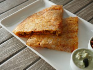 Brush oil over the top and leave dosa batter to brown gradually until outer edges begin to look dry.