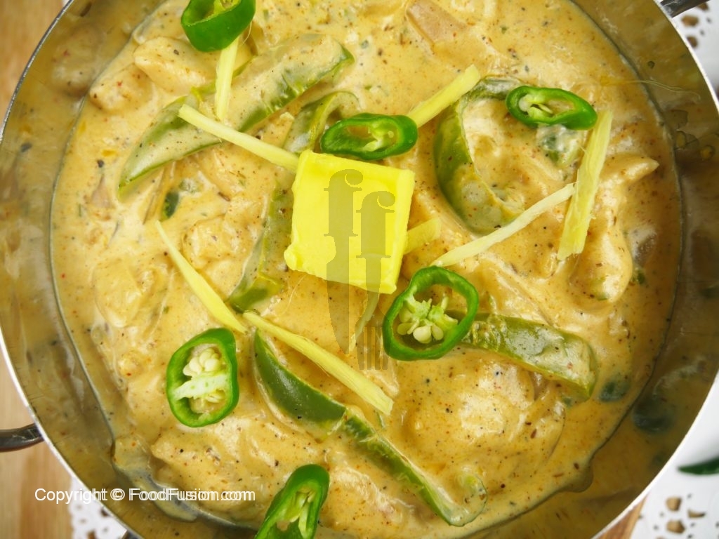 Adrak,hari mirch aur makhan sa garnish karein.