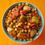 In bowl,add chickpeas,carrot,radish,toasted bran bread cubes and drizzle green sauce dressing,mix well & serve.