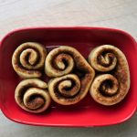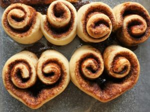 On baking tray,lined with butter paper,place cinnamon rolls cover and allow to rise for further 30-40 minutes or until doubled in size.