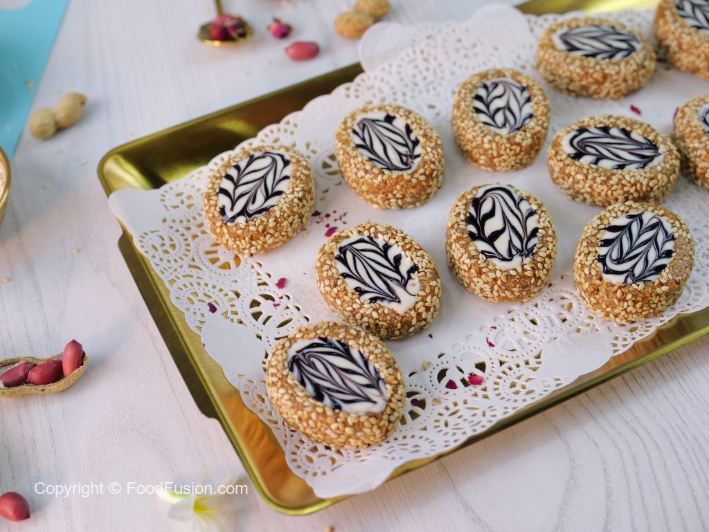 -Take a small quantity of mixture (30g),make a ball & coat with roasted sesame seeds.