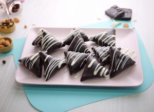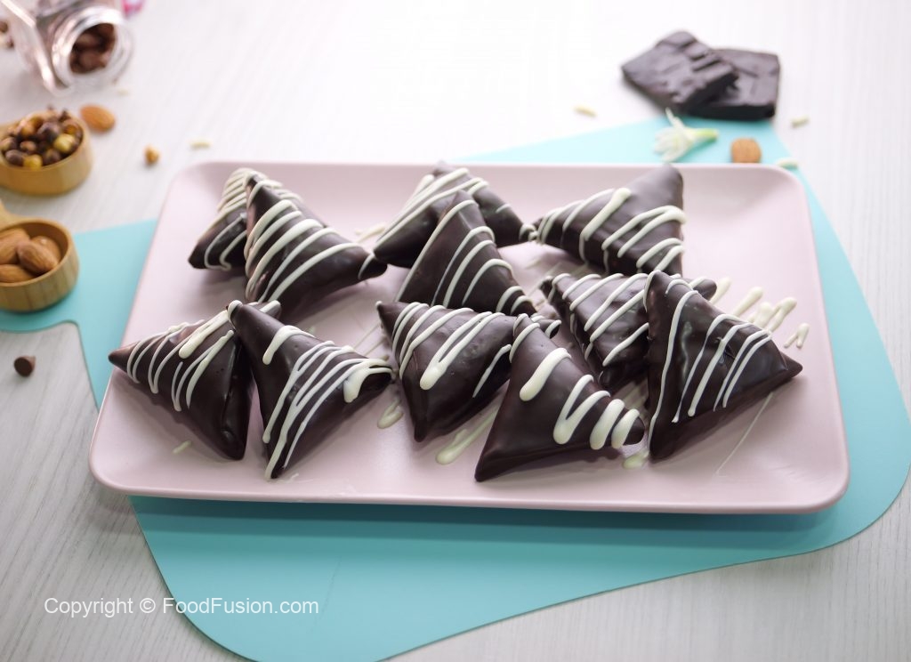-Add prepared chocolate & nuts filling,roll into the shape of samosa & seal the edges properly with flour slurry.