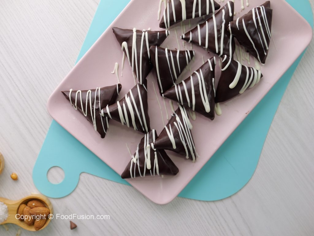 -Dip samosa in melted chocolate & place them on a grill rack until chocolate sets (makes 14).