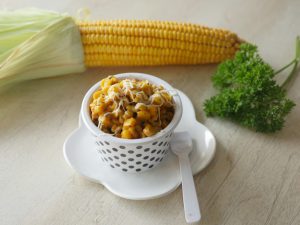 Bowl mein strainer rakh dein aur sweet corns ko strain ker lein & side per rakh dein.