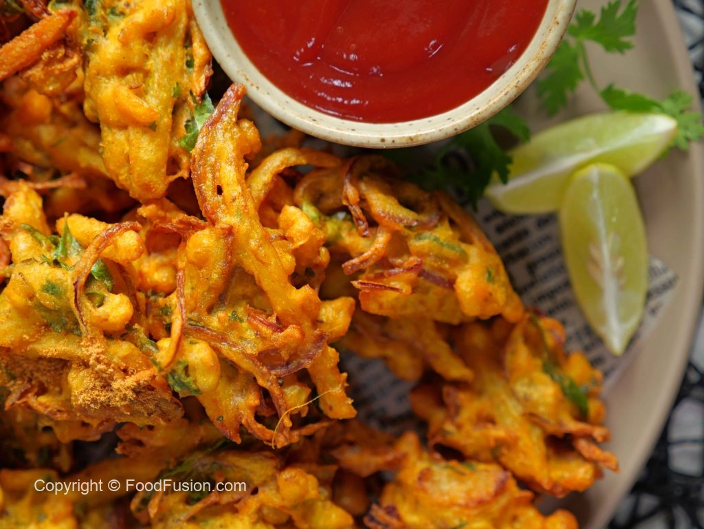 -In a wok,heat cooking oil & fry pakoray on medium flame until golden & crispy.