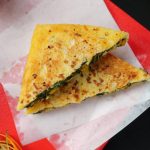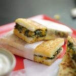 -Add butter,garlic,red chilli crushed,flip the sandwich & cook other side until golden & crispy (makes 4).