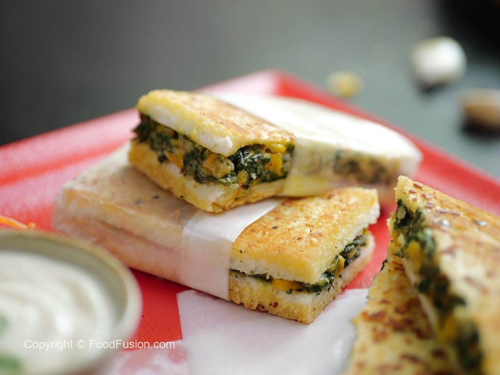 -Makhan & lal mirch crushed dal ker sandwich ko flip ker lein aur dosri side ko golden & crispy ho janay tak paka lein (makes 4).