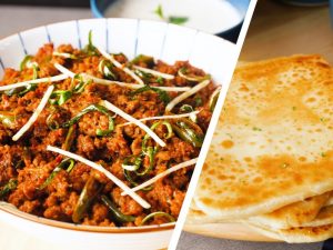 -Frying pan mein olive oil aur chicken dal dein aur rang tabdeel ho janay tak ache tarhan mix ker lein.