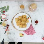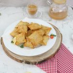 -Cut the rolled dough into square shape then cut into equal size of 4 squares (each 5 x 5 inch).