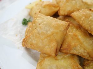 -In a wok,heat cooking oil & fry samosa on low flame until golden & crispy.