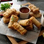 Tayyar creamy chicken filling rakh dein aur flour slurry laga ker sides ko fold ker lein aur sheet ko roll ker ka samosa tayyar ker lein (makes 18-20).