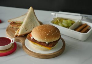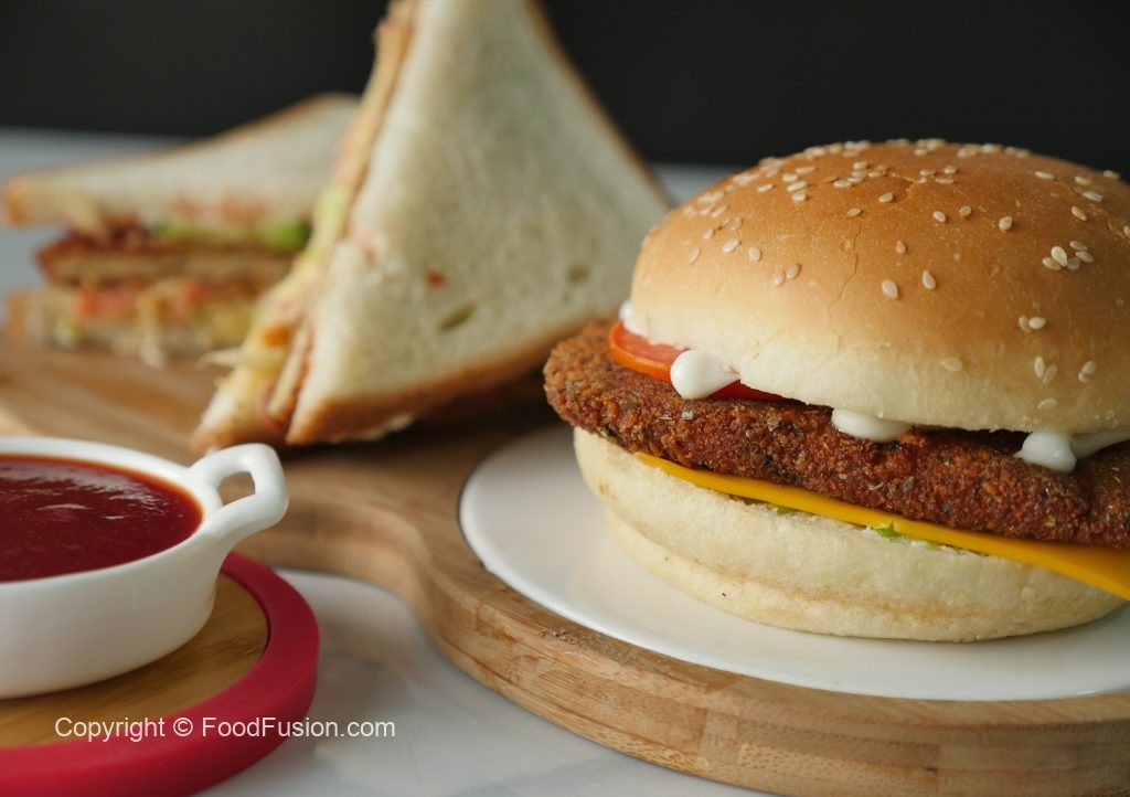 Grease hands with oil,take a mixture and make a ball (65 gms),coat in breadcrumbs,press and shape into square shape then dip into beaten eggs and again coat in breadcrumbs (makes 8-9).