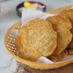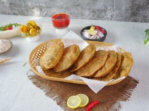 -Dust dry flour & roll out with the help of a rolling pin, make 5 inches puri. (Makes 13-14)
