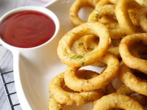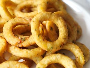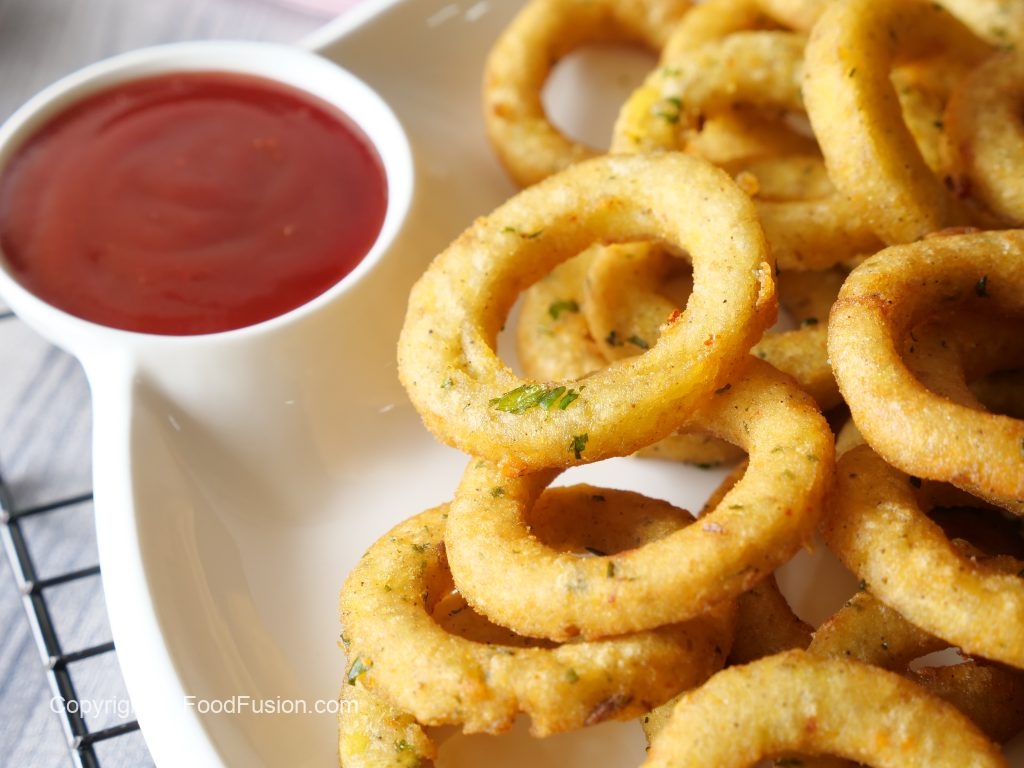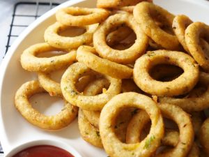 -In a frying pan,heat cooking oil and fry potato rings on medium flame until golden.