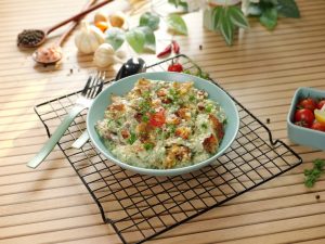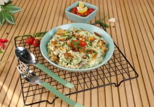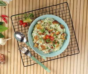 -Garnish with air fried potatoes,fresh parsley,red chilli crushed & serve!