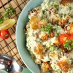 -Air fried potatoes ko crush ker ka salad bowl mein dal dein aur mix ker lein.