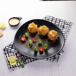 -Garnish with bang bang sauce,caviar,green onion,cucumber & cherry tomato.
