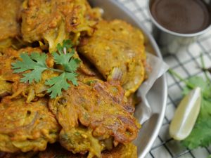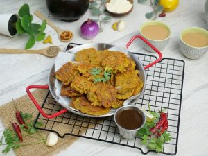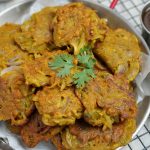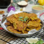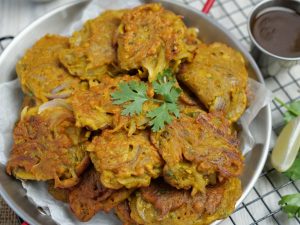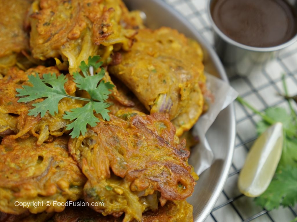 -On a griddle,add cooking oil,onion pakora batter & tawa fry on medium low flame from both sides until golden brown & crispy.