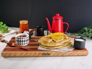 -Sprinkle dry flour & roll out with the help of rolling pin (makes 8-10).