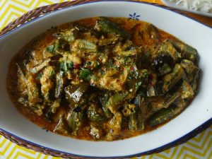 Now add fried okra and mix gently,cover & cook on low flame for 2-3 minutes.