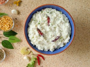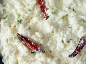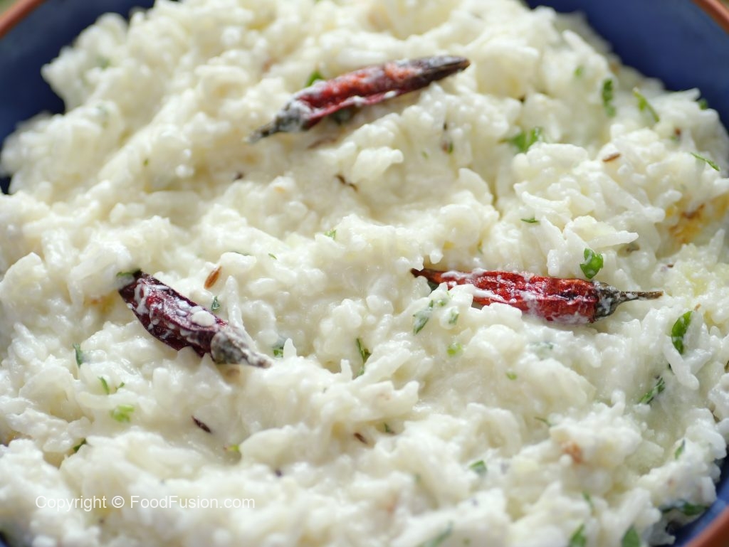 -In yogurt & rice mixture,pour prepared tarka,fresh coriander & mix well.