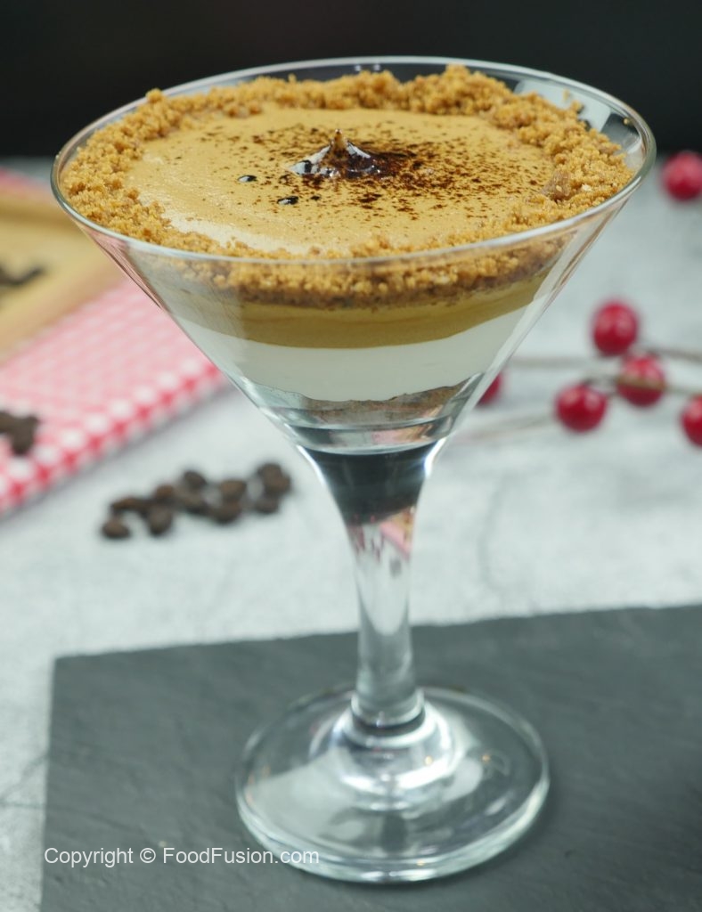 Garnish with crushed caramelized biscuits,instant coffee & serve!