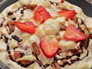 Bowl mein cream cheese aur shahad dal ker ache tarhan mix karein & side per rakh dein.