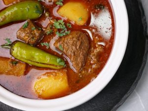 -Pot mein beef dal dein aur rang tabdeel ho janay tak ache tarhan mix ker lein.