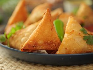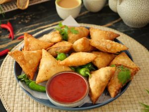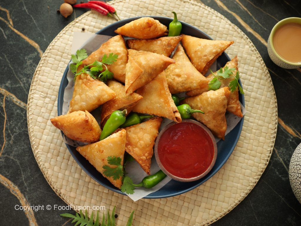 -In a wok,heat cookng oil & fry samosa on medium low flame until golden & crispy.