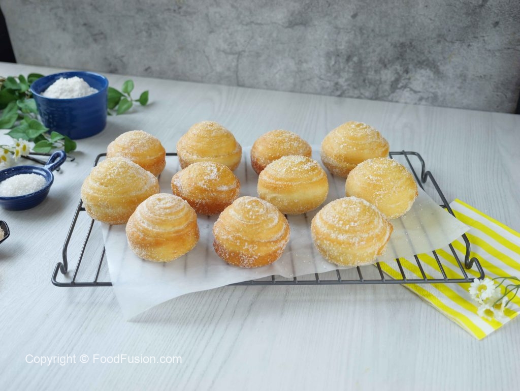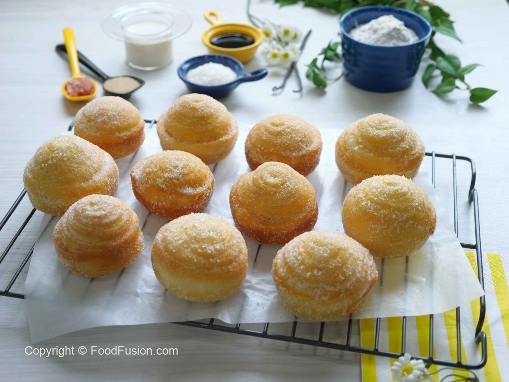 -Karahi mein cooking oil garam karein (140°C) aur halki ancch per golden ho janay tak fry ker lein aur bareek cheeni mein ache tarhan coat ker lein (makes 12).