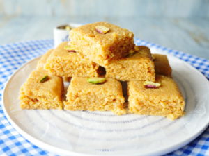 Desired shapes mein cut karein aur pista sa garnish ker ka serve karein.