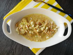 Turn off the flame,add fried bread pieces and let it soak for 10 minutes and turn carefully.