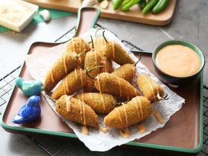 -Spray non-stick spray on both sides of chillies & air fry at 180C for 10-12 minutes.