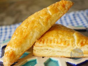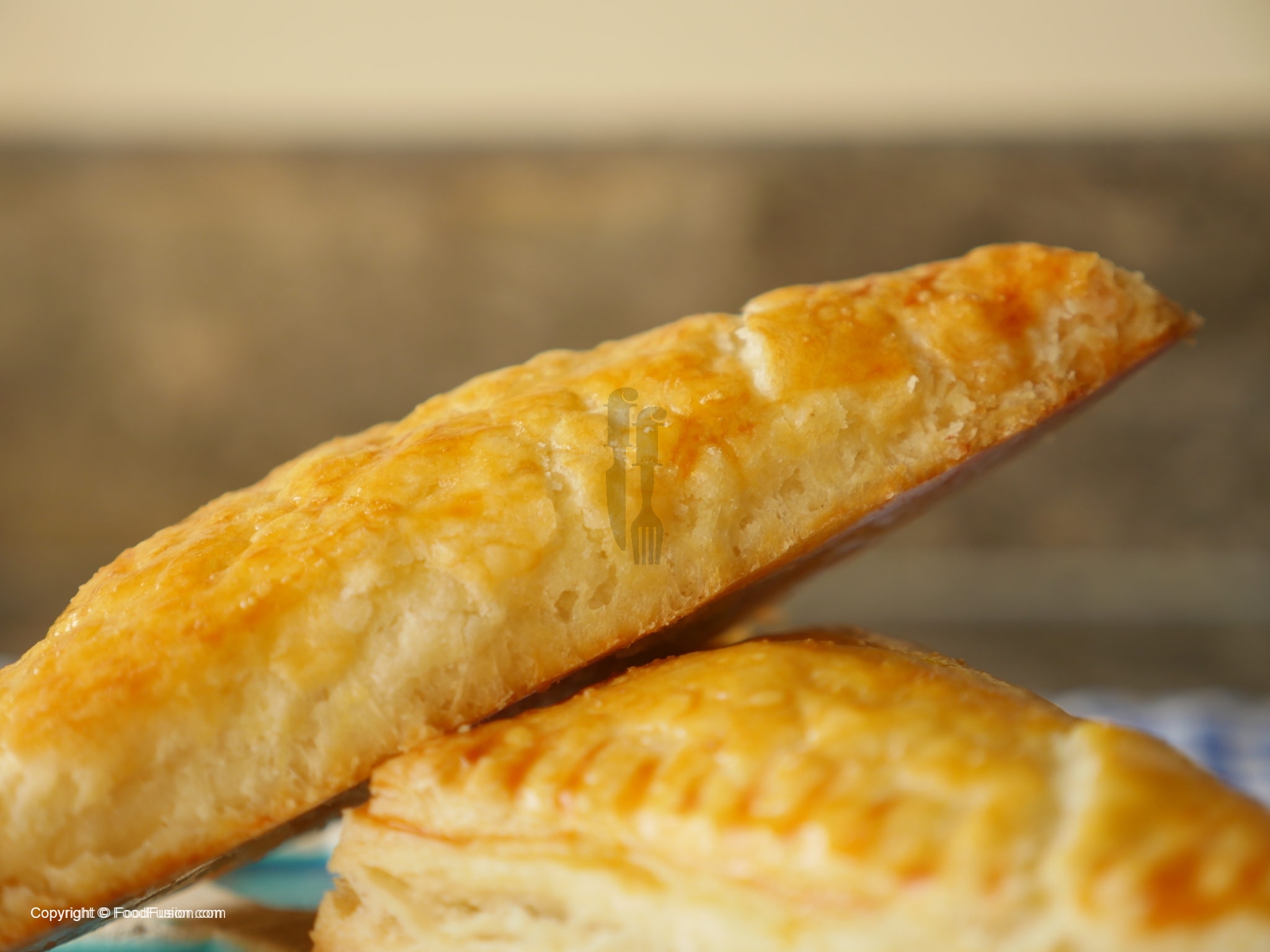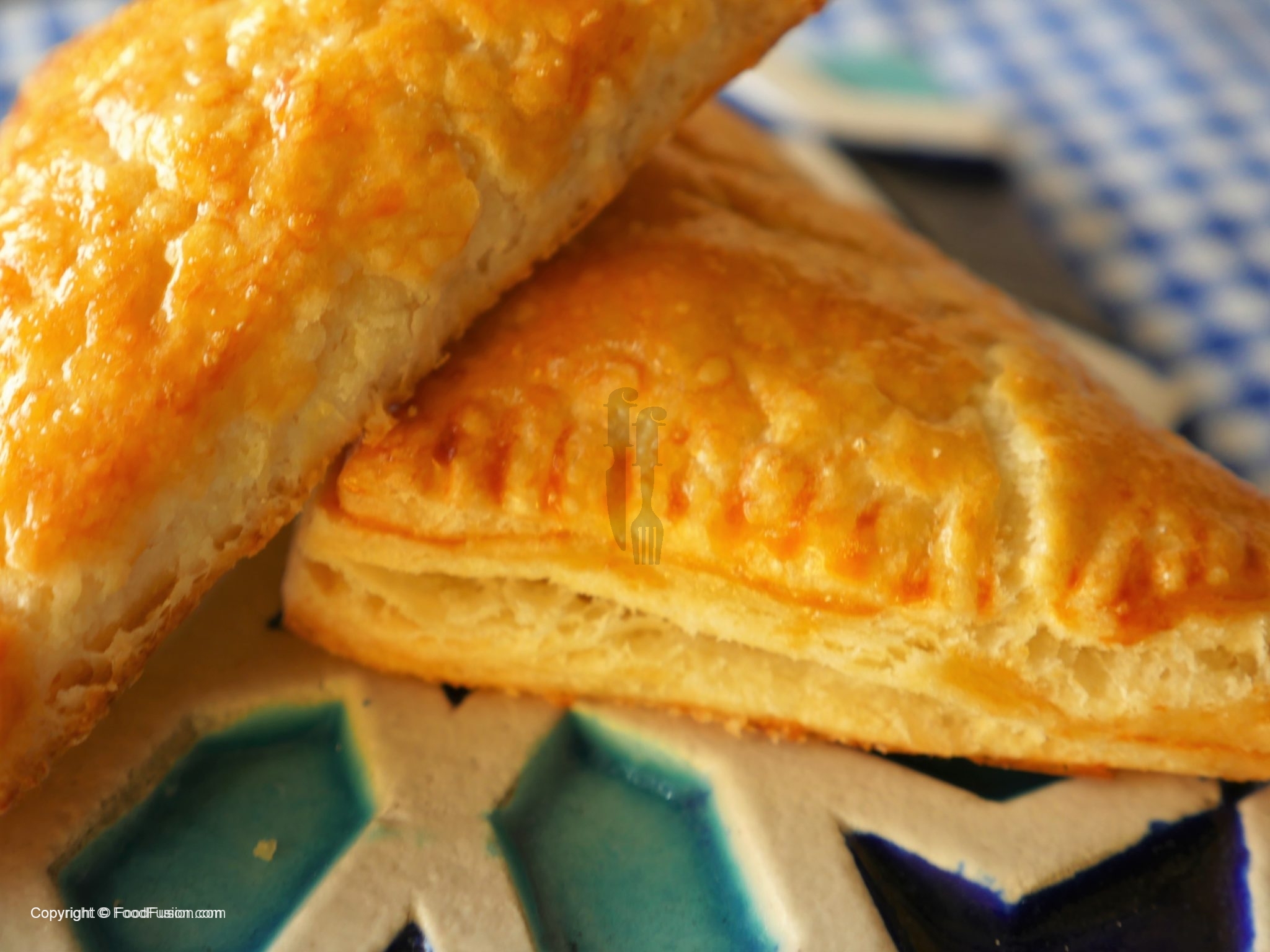 Puff pastry ko roll out ker ka cutter ki madad sa cut ker lein,egg wash karein,egg aur cheese filling rakh ker fold ker lein,fork ki madad sa halka sa press ker ka seal ker lein aur egg wash karein.
