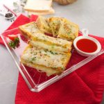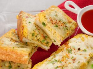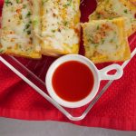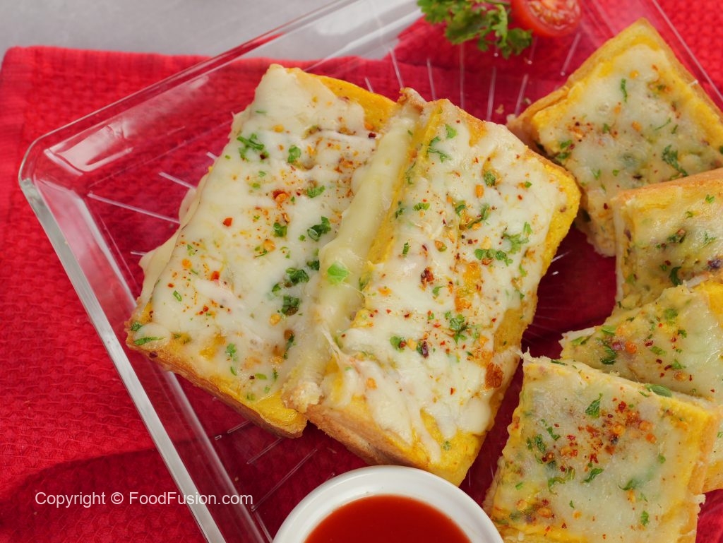 -Add mozzarella cheese,fresh parsley,red chilli crushed,cover & cook on low flame until cheese melts (makes 2) & serve!