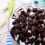 -Add prepared hot fudge sauce,brownie pieces & brush prepared coffee mixture on brownie pieces.