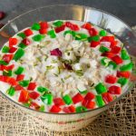Add colored vermicelli,banana,strained fruit cocktail & cham cham & mix gently.
