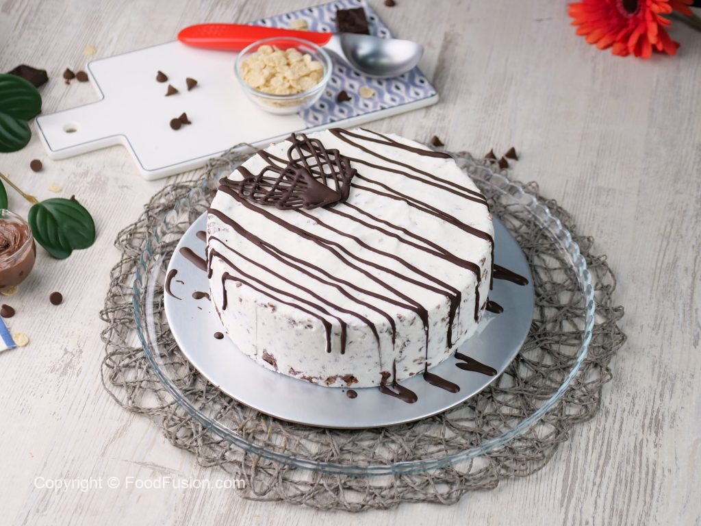 -In a bowl,add vanilla ice cream,roughly chopped Nutella coated rice flakes & fold with the help of spatula.