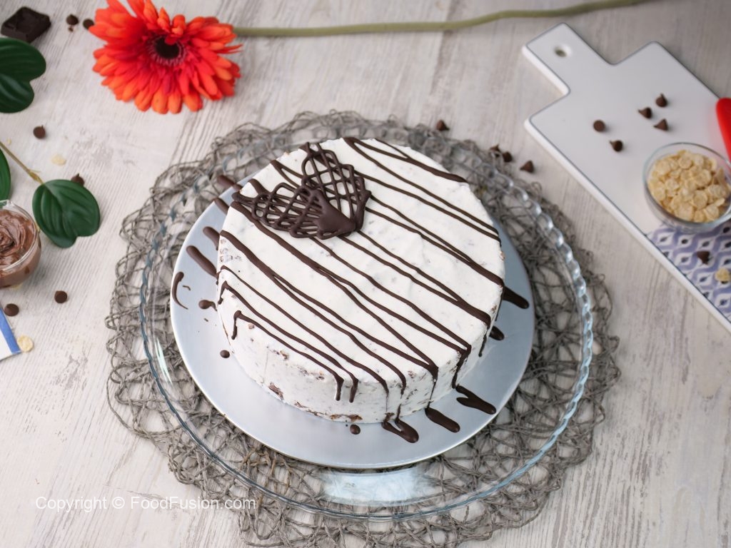 -Spread 1/3rd remaining portion of Nutella coated rice flakes on a clean working surface lined with butter paper,spread evenly & freeze for 30 minutes then take it out from freezer & chop roughly with the help of knife & set aside.