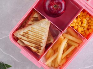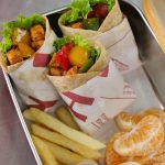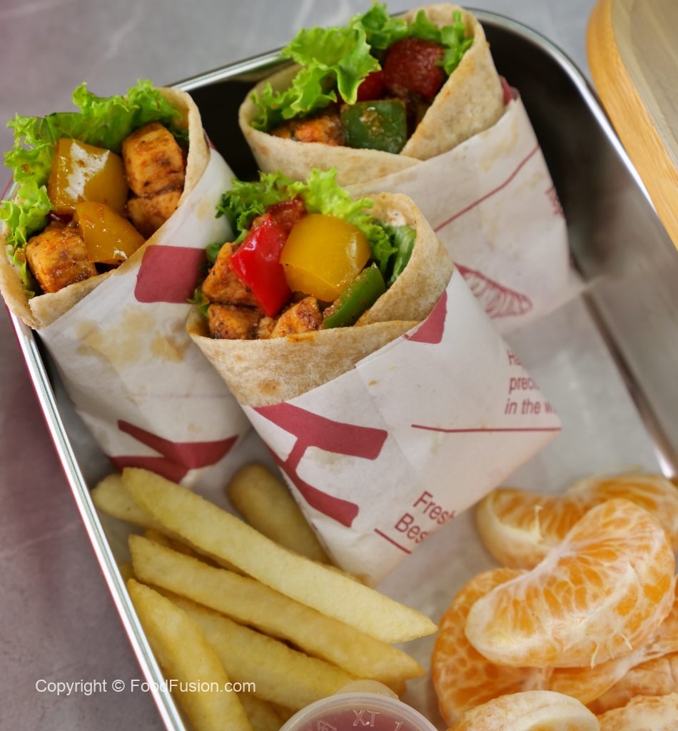 -Drizzle prepared sauce,lettuce leaf,prepared fajita filling,cheddar cheese slice,fold & seal with a skewer (make 6).
