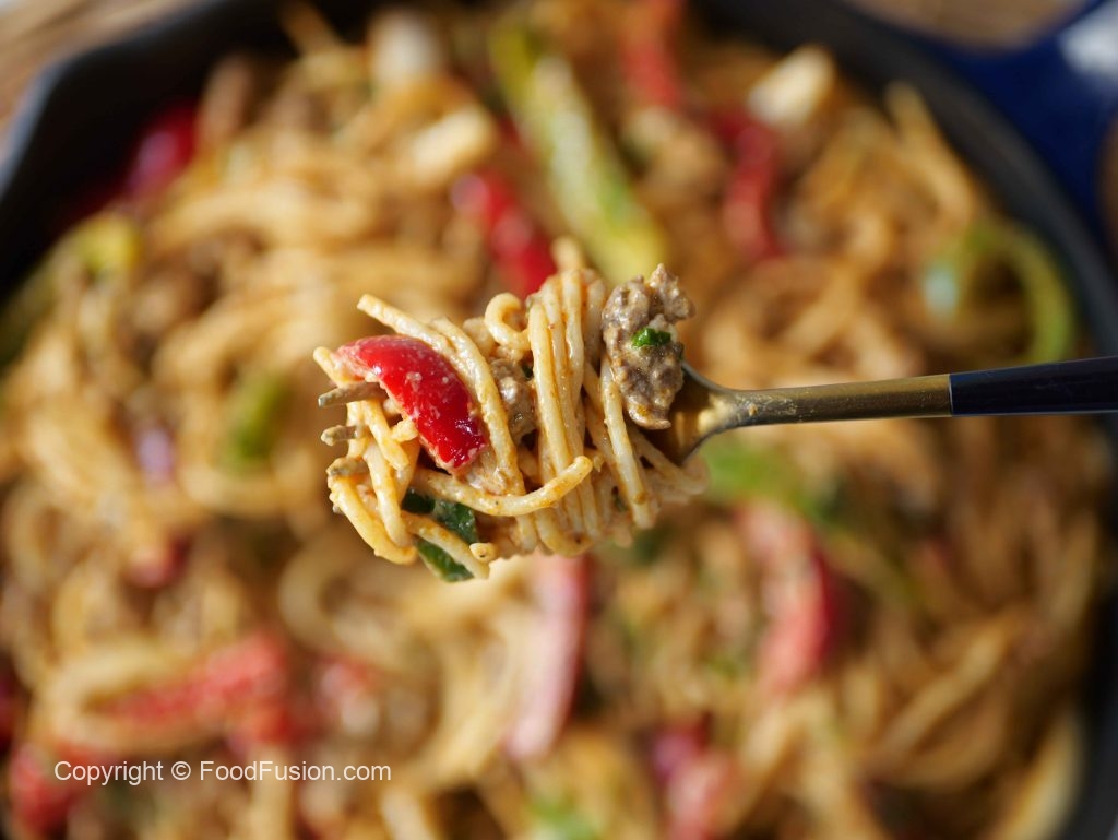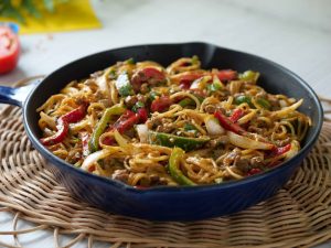 If you love fajitas and spaghetti, this recipe is the ultimate fusion you didn’t know you needed. Quick, easy, and full of flavor – this one’s a must-try! #happycookingtoyou #foodfusion #recipes #fusionfood @BlueBandPakistan